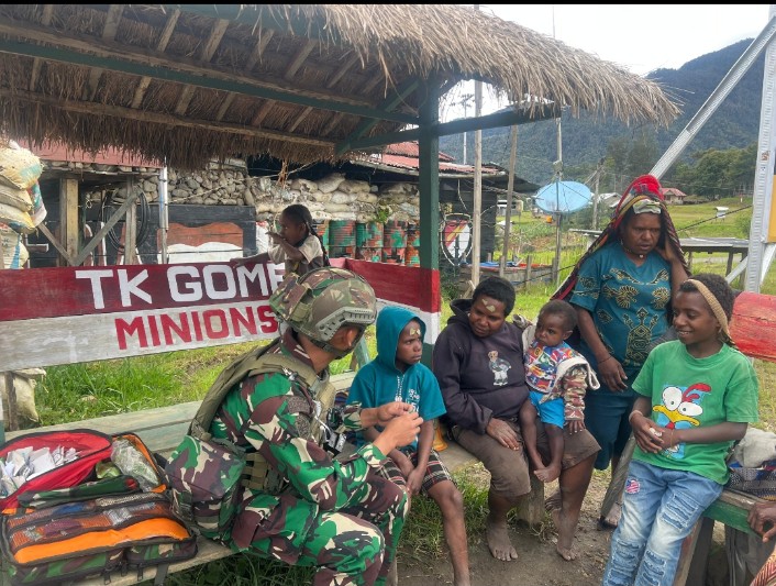 Pada Rabu, (25/12/2024), Satgas Yonif 323 Kostrad, khususnya Pos Gome pimpinan Lettu Inf Galang, menggelar Kegiatan Teritorial bertajuk “Pelayanan Kesehatan (Yankes) Gratis” bagi warga Kampung Ninggabuma, Distrik Gome.