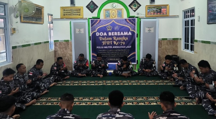 TNI AL, Kepulauan Anambas,Swaranusa.7.com-Bertempat di Musholla Al Bahari Lanal Tarempa, Personel Denpomal Lanal Tarempa beserta Prajurit Lanal Tarempa menggelar acara Doa Bersama dalam rangka rangkaian menyambut Hari Ulang Tahun Ke-79 Polisi Militer TNI Angkatan Laut Tahun 2025, Rabu (19/2/2025).