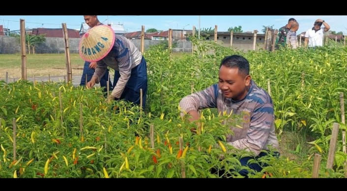 Kegiatan diawali dengan panen sayuran di Kebun Ketahanan Pangan Satlinlamil 3 yang ditanami berbagai jenis sayuran seperti Kangkung, Timun, Kacang Panjang, Terong, dan Cabai.