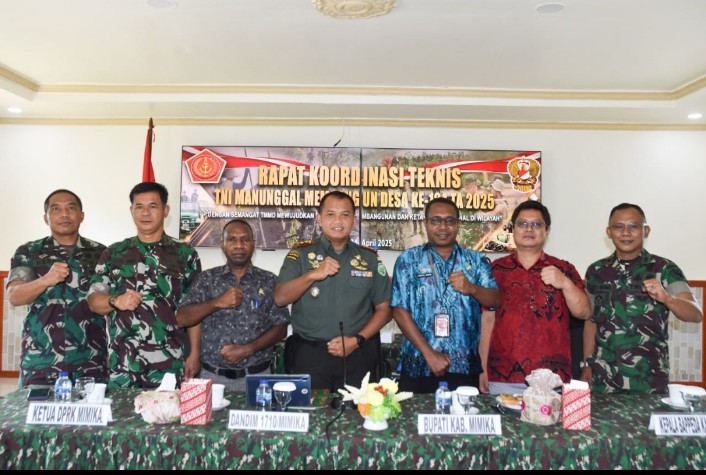 Timika, Swaranusa7. com- Komandan Kodim (Dandim) 1710/Mimika, Letkol Inf M. Slamet Wijaya, S. Sos., M. Han., M.A. bersama Forum Koordinasi Pimpinan Daerah (Forkopimda) Kabupaten Mimika mengikuti Rapat Koordinasi Teknis (Rakornis) TNI Manunggal Membangun Desa (TMMD) ke-124 secara virtual, yang diselenggarakan oleh TNI Angkatan Darat, Kamis (24/4/2025).