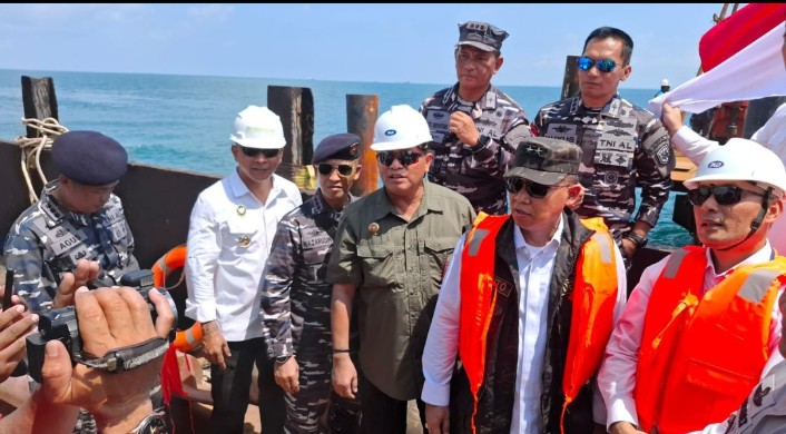 Komandan Lanal Bintan Kolonel Laut (P) Dr. Eko Agus Susanto, S.E., M.M., dalam kegiatan mengecek progres pembangunan Menara Suar Karang Singa sebagai bentuk menjaga kedaulatan wilayah Republik Indonesia dengan mengunakan Kapal Patroli Keamanan Laut Combat Boat 58 Lanal Bintan, Rabu (07/05/2025).