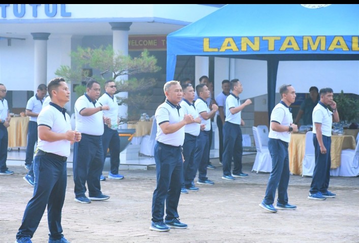 TNI AL, Belawan,Swaranusa7.com-Komandan Pangkalan Utama TNI AL I (Danlantamal I) Brigjen TNI (Mar) Jasiman Purba, S.E., CHRMP., melaksanakan olahraga bersama dengan Prajurit Satuan Kapal Patroli (Satrol) Lantamal I, bertempat di Lapangan Apel Satrol Lantamal I, Jumat (9/5/2025).