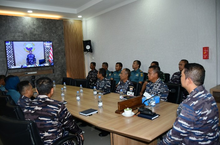 TNI AL, Bandung,Swaranusa7.com-Komandan Pangkalan TNI Angkatan Laut (Danlanal) Bandung Kolonel Laut (P) Muhammad Taufik, M.Tr.Hanla., M.M., beserta Perwira Staf Lanal Bandung mengikuti Briefing Awal Latihan Penegakan Hukum dan Keamanan Laut Jajaran Koarmada I TA. 2025 secara Video Teleconference (Vicon) yang dipimpin langsung oleh Pangkoarmada I Laksamana Muda TNI Fauzi, S.E., M.M., M.Tr.Opsla., M.Han., bertempat di Ruang Rapat Mako Lanal Bandung, Jalan Aria Jipang No. 8 Kota Bandung, Rabu (14/05/2025).