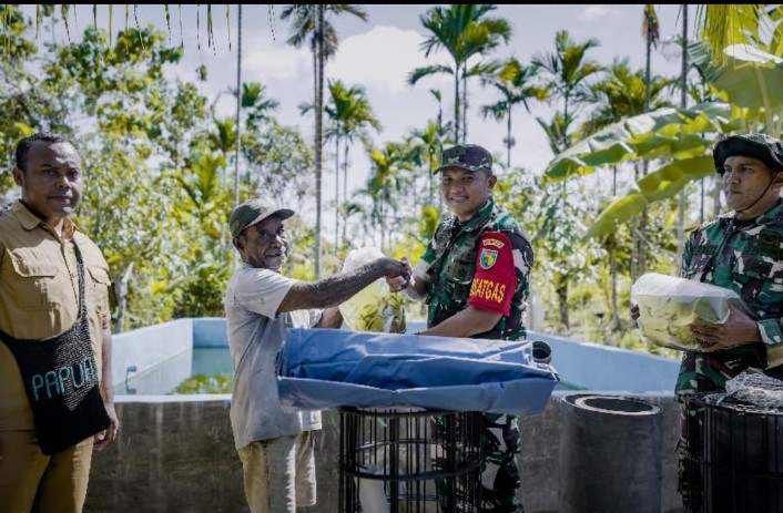 Timika, Swaranusa7. com- Satuan Tugas (Satgas) TNI Manunggal Membangun Desa (TMMD) kembali menunjukkan kepeduliannya kepada masyarakat. Dalam rangka mendukung Program Unggulan Kepala Staf Angkatan Darat (Kasad), Satgas TMMD memberikan bantuan berupa kolam ikan dan bibit lele kepada warga di Kampung Naena Muktipura, Distrik Iwaka, Kab. Mimika. Rabu (14/5/2025).