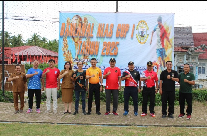 TNI AL, Nias,Swaranusa7.com-Wakil Bupati Nias Selatan Yusuf Nakhe, S.T., M.M., meresmikan Pembukaan Turnamen Sepak Bola Danlanal Nias Cup I Tahun 2025, ditandai dengan tendangan bola pertama, bertempat di Lapangan Sepak Bola Lanal Nias Solimbu Asi Sataro, Jalan Baloho Indah, Kecamatan Telukdalam, Kabupaten Nias Selatan, Provinsi Sumatera Utara, Senin (19/5/2025).