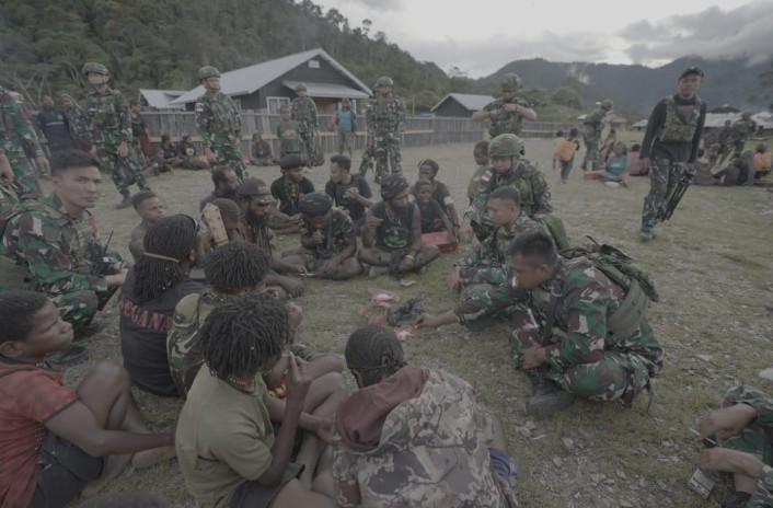 Puncak Jaya, Swaranusa7.com- Ditengah semilir angin pegunungan Papua, sebuah momen penuh makna terjadi di kampung Tirineri, Distrik Yambi Puncak Jaya. Personel Satgas Yonif 715/Mtl Pos Tirineri dipimpin oleh Wadansatgas Kpt inf Ichsan Pratama duduk bersama masyarakat kampung Tirineri sambil memakan pinang dan mengisap anggur kupu untuk mendengarkan curahan hati dan keluh kesah yang ada di tengah-tengah masyarakat Tirineri, Senin (26/05/2025).