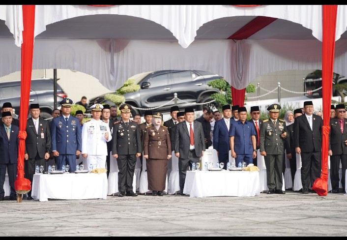 Bertindak selaku Inspektur Upacara (Irup) Gubernur Riau H. Abdul Wahid, M.Si. Dengan mengusung tema “Memperkokoh Ideologi Pancasila Menuju Indonesia Raya” upacara dilaksanakan dengan penuh hikmad dan tertib.
