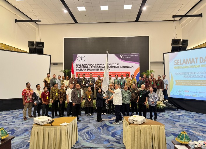 Makassar,Swaranusa7.com-Musyawarah Provinsi (Musprov) XVI/2025 Gabungan Perusahaan Farmasi Indonesia Daerah Sulawesi Selatan telah sukses dilaksanakan dengan lancar dan tertib, bertempat di Mahoni Hall Hotel Claro, Jalan Andi Pangeran Pettarani Makassar. Kegiatan berlangsung sejak pukul 08.00 hingga 17.00 WITA dan dihadiri ±100 peserta dari berbagai unsur keanggotaan, yakni Pedagang Besar Farmasi (PBF), Apotek, dan Toko Obat, Rabu (18/6/2025).