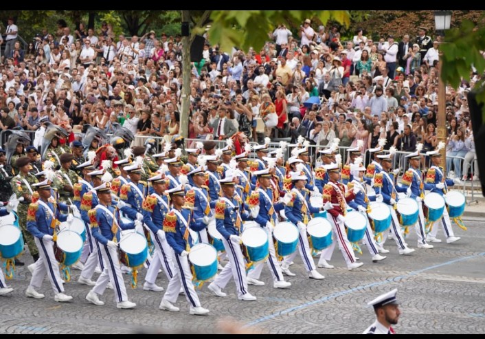 Swaranusa7.com-Derap langkah tegap diiringi irama langkah yang kompak dan penuh semangat, pasukan TNI berhasil menarik perhatian ribuan warga Paris yang tumpah ruah memadati sisi jalan, serta disambut tepuk tangan meriah dari para tamu kehormatan dan masyarakat internasional yang hadir pada peringatan Hari Nasional Prancis (Bastille Day) bertempat di Champs-Élysées, Paris, Senin (14/7/2025).