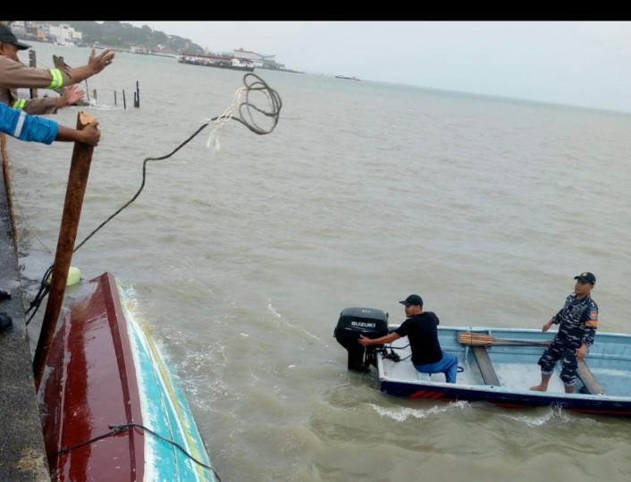 TNI AL, Tanjungpinang,Swaranusa7.com- Personel Pos TNI AL Senggarang Lanal Bintan telah membantu evakuasi terhadap kapal pompong tanpa nama yang mengalami kecelakaan laut kapal tenggelam di Pelantar Tengah, Perairan Senggarang, Tanjungpinang yang diakibatkan karena adanya cuaca buruk, Senin (01/09/2025).