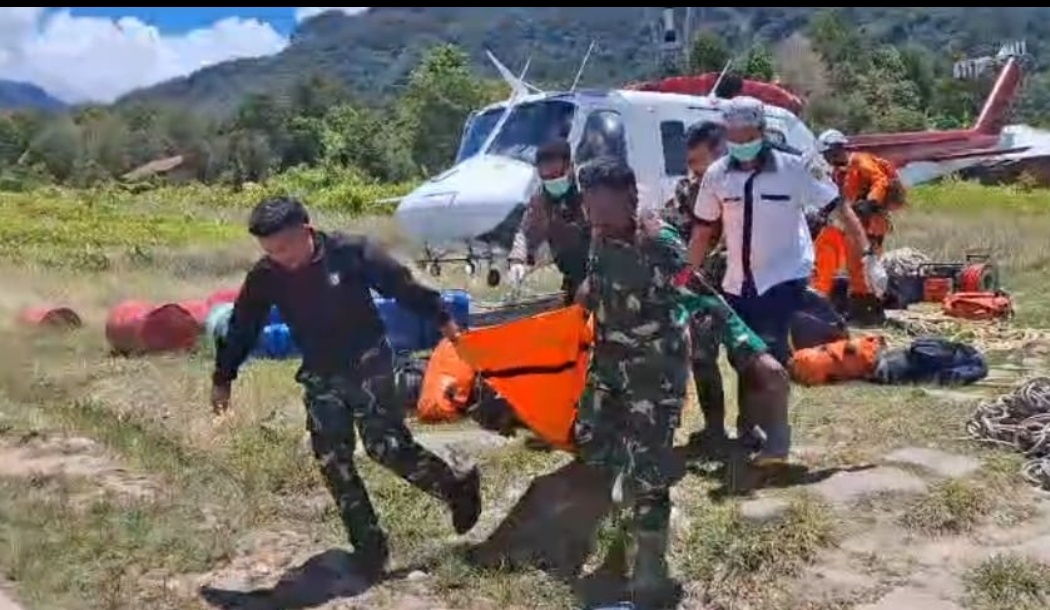 Timika, Swaranuss7. com- Personel Kodim 1710/Mimika sigap bantu proses evakuasi korban kecelakaan Helikopter jenis PK-IWS milik PT. Intan Angkasa yang mengalami kecelakaan pada Rabu, 10 September 2025 saat perjalanan dari Kab. Puncak menuju Bandara Mozes Kilangin Timika. Kamis (11/09/2025).