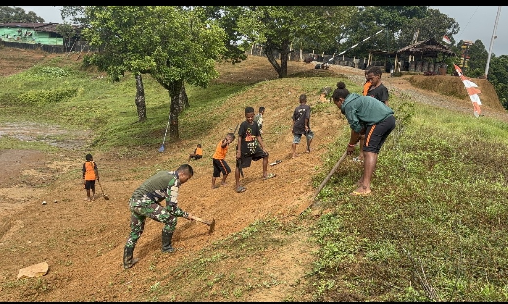 Boven Digoel ,Swaranusa7.com- Kegiatan karya bakti terpadu digelar oleh Satgas Pamtas RI-PNG Yonif 126/Kalacakti bersama guru dan siswa SD Negeri Persiapan Amupkim sebagai bagian dari upaya membangun lingkungan pendidikan yang layak, bersih, dan mendukung proses belajar-mengajar di wilayah perbatasan.