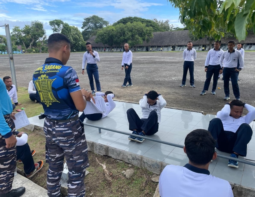 Tes Samapta diawali dengan pemeriksaan tekanan darah oleh Tim Kesehatan RSAL J. Lilipory Lanal Sabang. Setelah itu, peserta melakukan pemanasan dan peregangan sebagai persiapan agar tidak terjadi cedera pada peserta saat melaksanakan kegiatan tersebut.