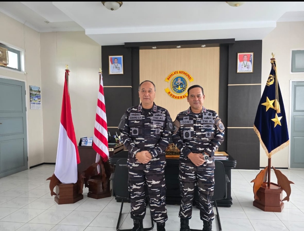 TNI AL, Amvon,Swaranusa 7.com-Komandan Komando Daerah Angkatanr Laut (Dankodaeral) Laksamana Muda TNI Hanarko Djodi Pamungkas, S.H., menerima Courtesy Call (CC) Komandan Gugus Keamanan Laut (Danguskamla) Koarmada III Laksamana Pertama TNI Tomi Erizal, S.E., M.M., bersama rombongan, bertempat di Lobby Mako Kodaeral IX, Desa Halong, Kecamatan Baguala, Kota Ambon, Provinsi Maluku, Kamis (18/09/2025).