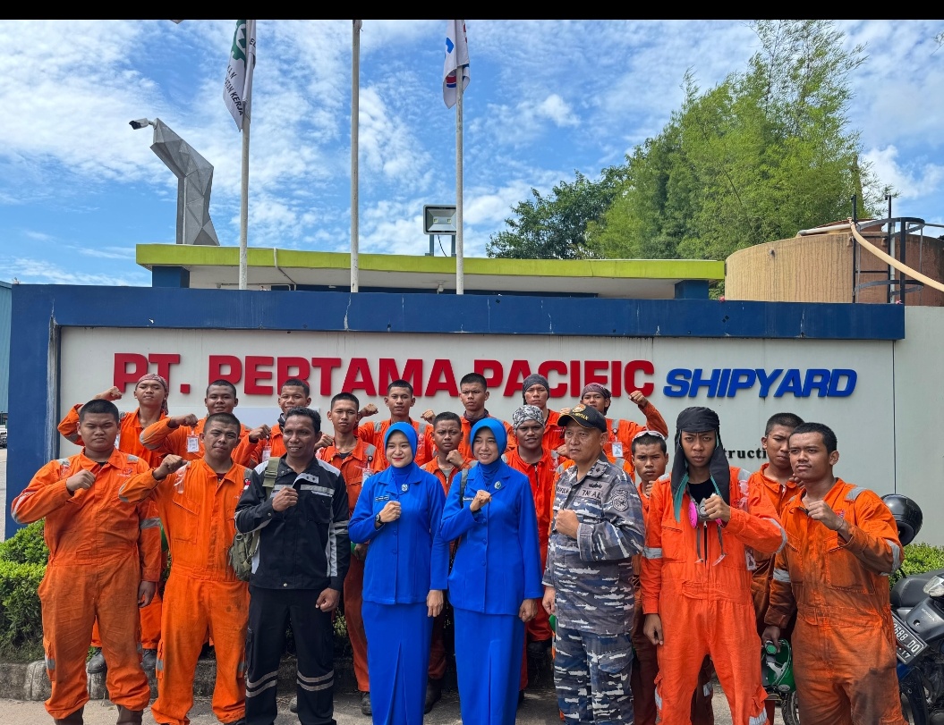 TNI AL, Bintan,Swaranusa7.com- Pengurus Yayasan Hang Tuah Lanal Bintan yang dipimpin oleh Pengawas Yayasan Hang Tuah Perwakilan Bintan Ny. Erni Eko Agus Susanto mengunjungi Siswa Kelas Industri Taruna Tingka 3 SMK Perkapalan Yayasan Hang Tuah Tanjung Uban Lanal Bintan yang sedang melaksanakan Kelas Industri di PT. Pertama Pacific Shipyard Sei Lekop Sagulung Batam, Senin (22/09/2025).