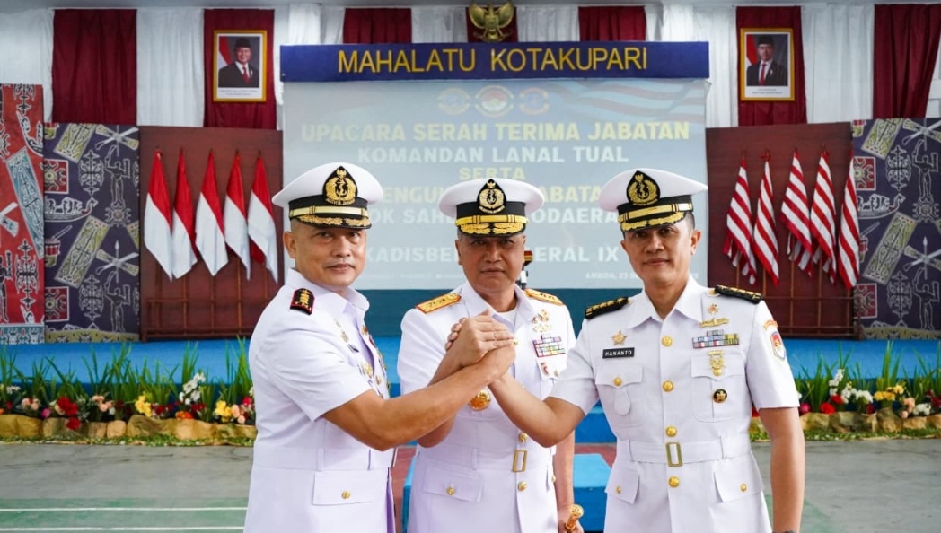 TNI AL, Ambon,Swaranusa7.com-Komandan Kodaeral IX Ambon Laksda TNI Hanarko Djodi Pamungkas S.H., pimpin Upacara Serah Terima Jabatan Komandan Lanal Tual dan Pengukuhan Jabatan Kapok Sahli Dankodaeral IX serta Kadisbek Kodaeral IX, bertempat di Gedung J. Leimena Mako Kodaeral IX, Selasa (23/09/2025).