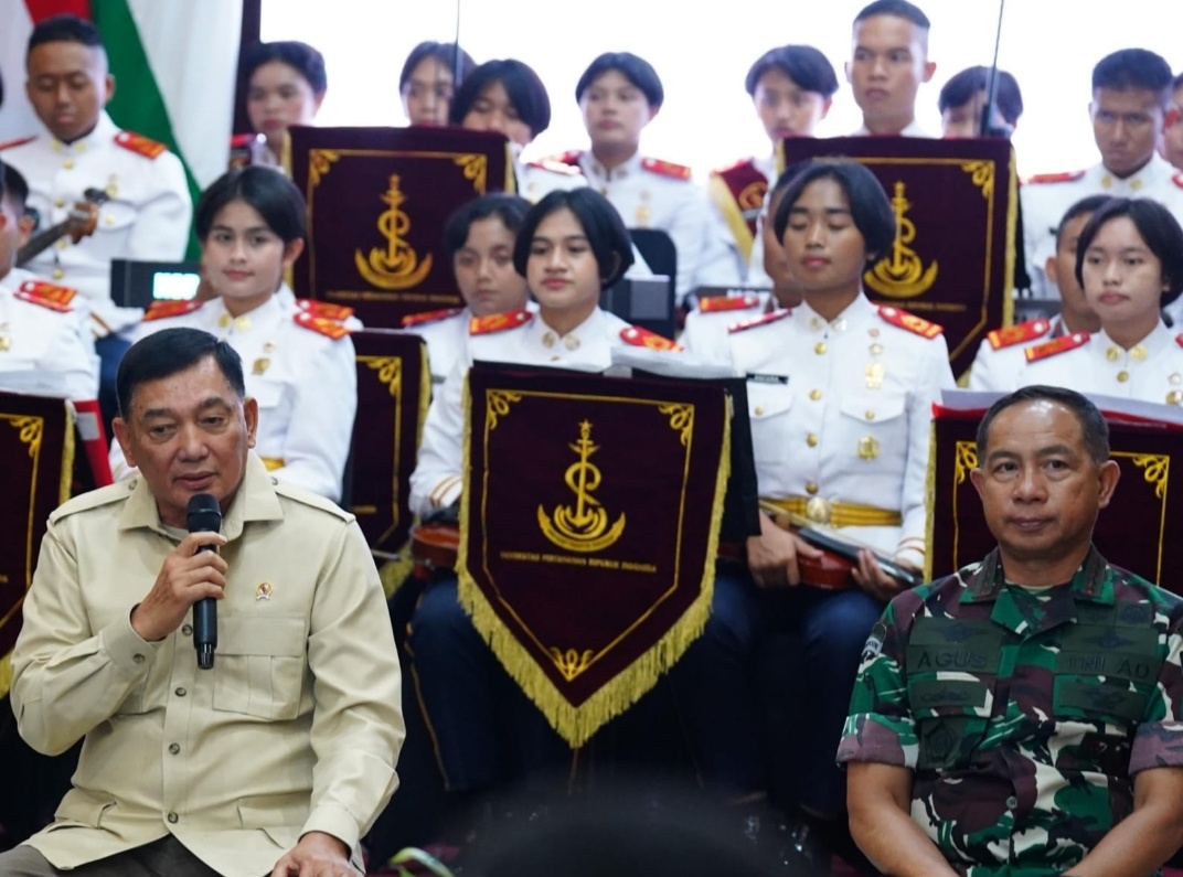 Swaranusa 7.com-Panglima TNI Jenderal TNI Agus Subiyanto mendampingi Menteri Pertahanan RI Bapak Sjafrie Sjamsoeddin memberi pengarahan kepada 44 Kadet Universitas Pertahanan (Unhan) asal Palestina. Kegiatan berlangsung di Aula Bhineka Tunggal Ika, Gedung Sudirman, Kementerian Pertahanan RI, Jakarta Pusat, Jumat (26/9/2025).