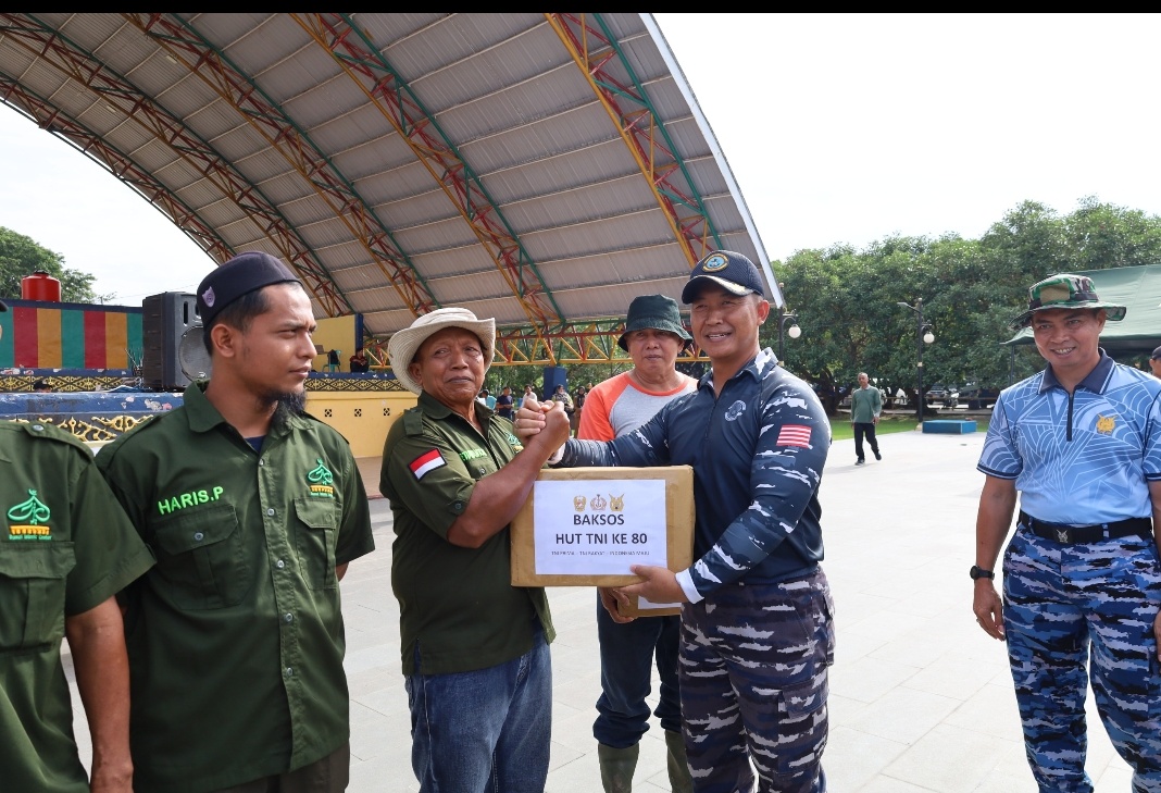 TNI AL, Dumai,Swaranusa7.com-Semarak Peringatan Hari Ulang Tahun (HUT) Ke-80 Tentara Nasional Indonesia, terasa istimewa di Kota Dumai. Seluruh unsur TNI di wilayah Dumai bersatu menggelar acara Bakti Prima TNI, sebuah kegiatan sosial yang dipimpin langsung oleh Komandan Pangkalan TNI Angkatan Laut Dumai Kolonel Laut (P) Abdul Haris, S.E., M.M.D.S., dengan didampingi Ketua Jalasenastri Cabang 4 Daerah Kodaeral I Jalasenastri Gabungan Koarmada RI Ny. Dewi Abdul Haris, bertempat di Taman Bukit Gelanggang, Jalan HR. Soebrantas, Kota Dumai, Selasa (30/9/2025).