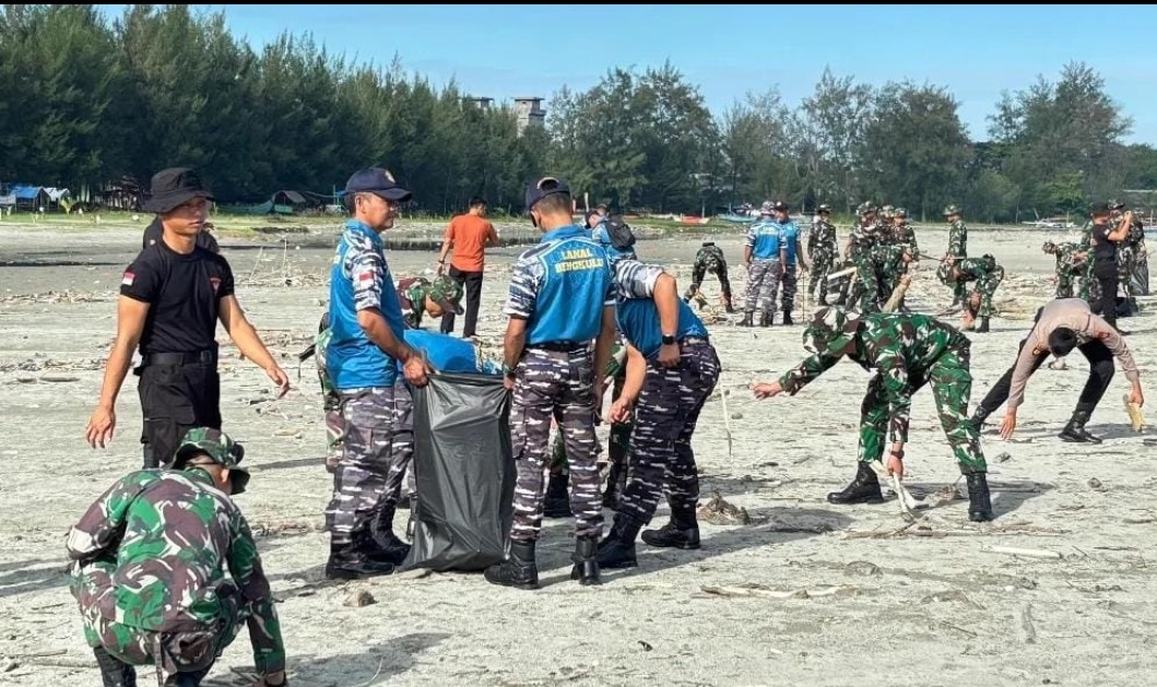 Pantai Zakat yang merupakan salah satu ikon wisata Kota Bengkulu menjadi fokus utama kegiatan ini, Prajurit Lanal Bengkulu bersama-sama dengan instansi terkait bahu-membahu membersihkan sampah-sampah yang berserakan disepanjang pantai mulai dari sampah plastik, botol kaca, hingga sampah organik yang terbawa arus laut.