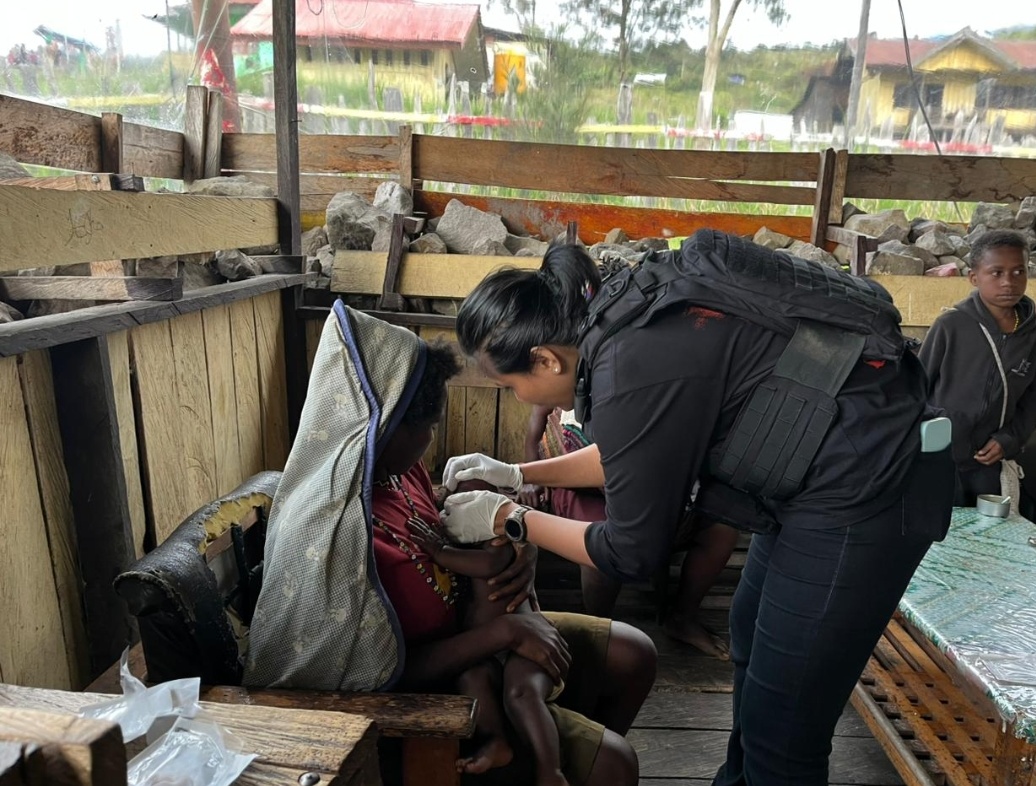 Kegiatan yang berlangsung di distrik Sinak ini dipimpin oleh Ipda dr. Shintia Novotna Katoda bersama Briptu Dedi Arianto, dan diikuti oleh sejumlah personel Satgas lainnya, antara lain Aipda Dwi Kuntoro, Briptu Refly Muhamad, Bripda Annisa Mahardika, Bharaka Bastian dan Bripda Alfesa Hafiz.
