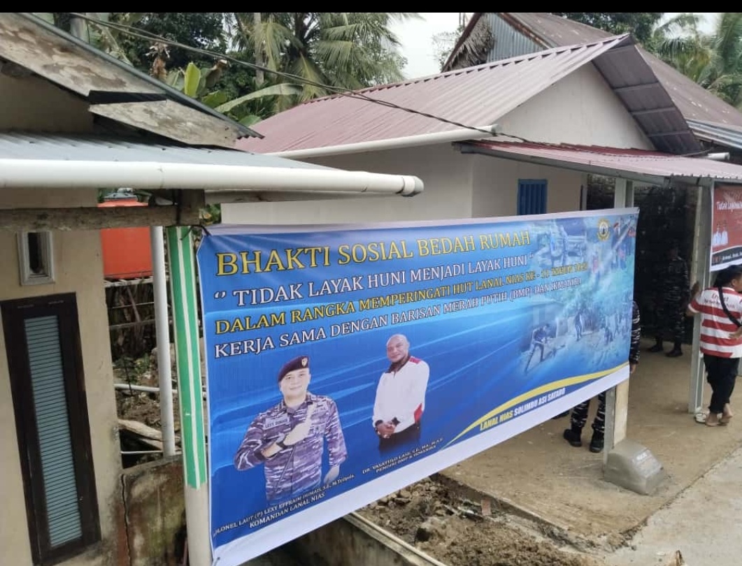 Kegiatan Bakti Sosial ini merupakan bentuk pengabdian yang dilakukan oleh Lanal Nias bekerjasama dengan Barisan Merah BMP dan IKMANIRA untuk memberikan kepedulian kepada masyarakat, terutama mereka yang kurang mampu dan membutuhkan rumah layak huni. Ibu Adinar Sarumaha terpilih sebagai penerima rumah layak huni tahun ini dikarenakan kondisi rumah yang sangat memprihatinkan dan layak untuk dibantu.